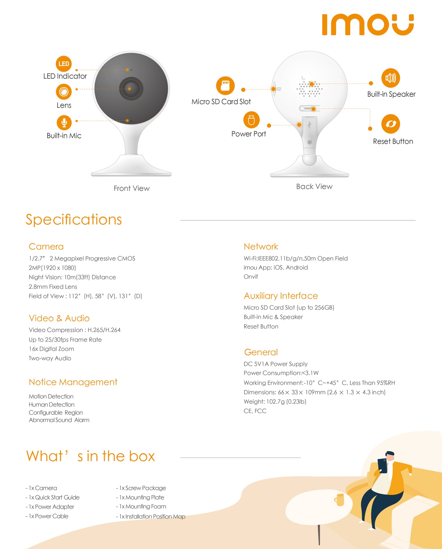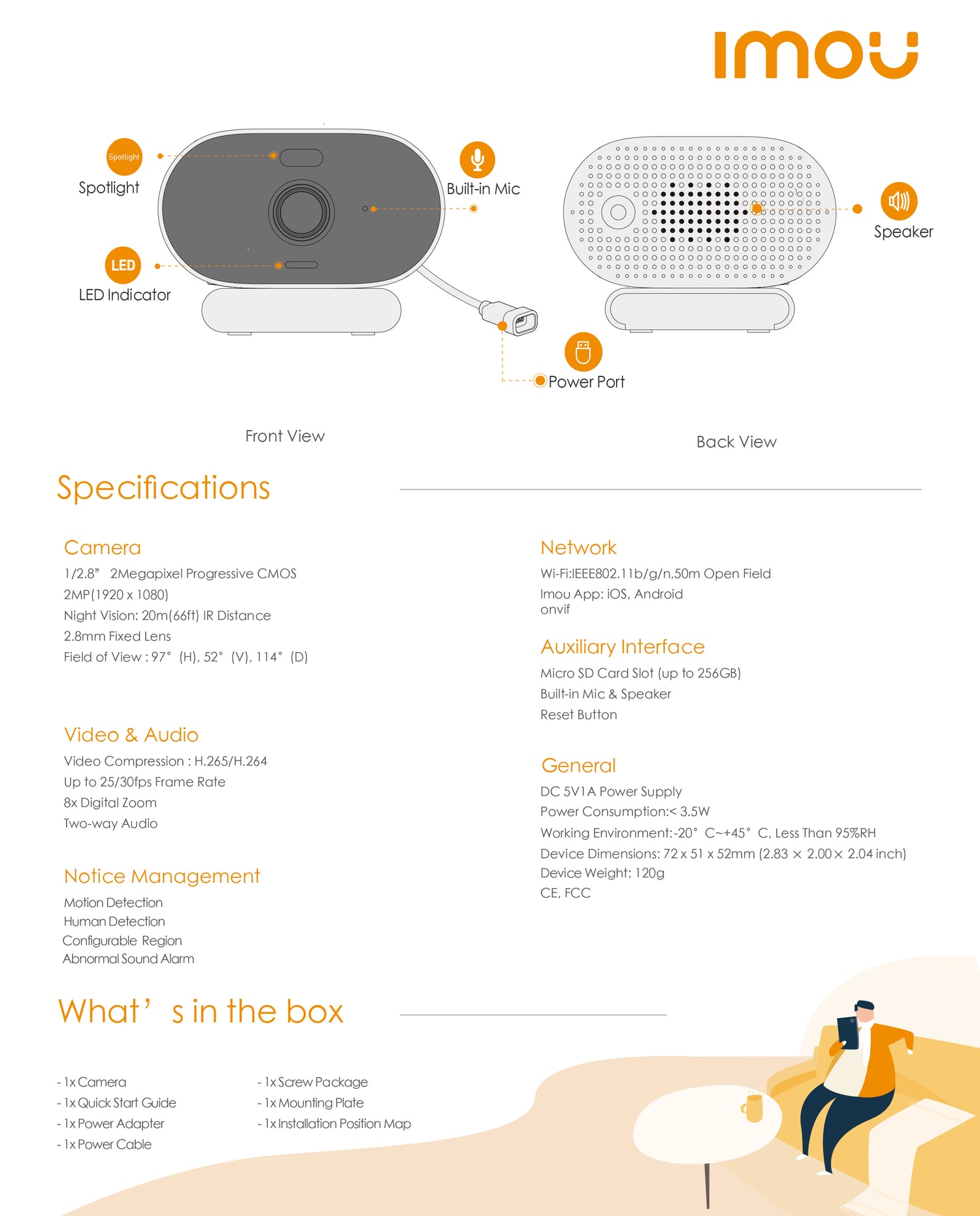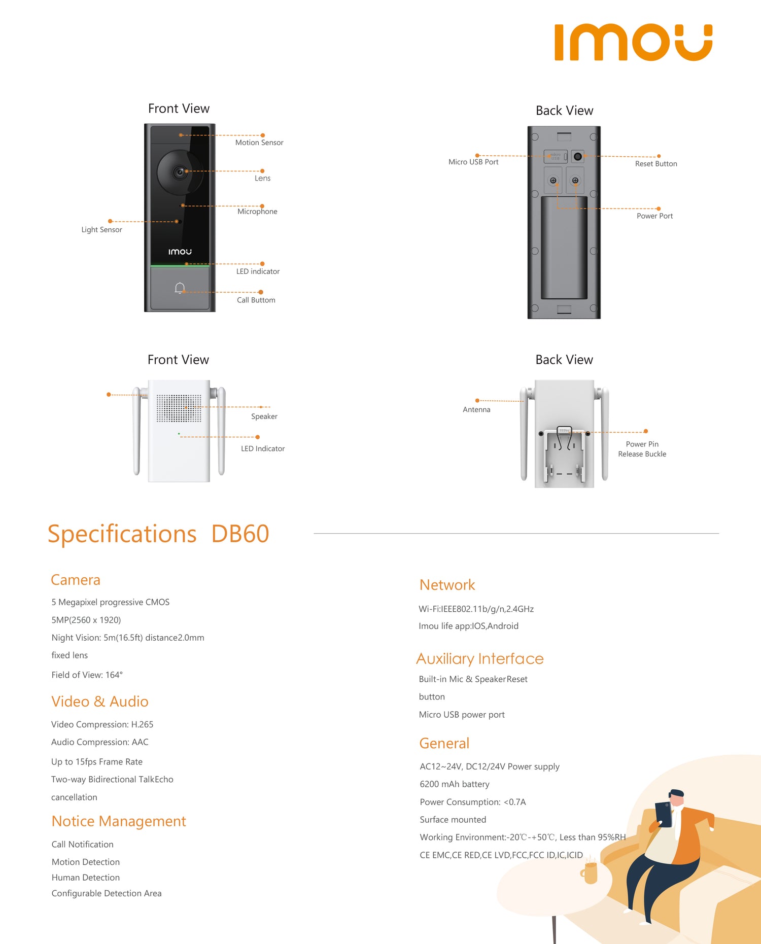 IMOU Smart Home Camera and Doorbell Bundle contains IMOU DB60 Outdoor Battery Doorbell, IMOU Versa, 1080P/2MP, Outdoor & Indoor Smart Wi-Fi Plug-In Security Camera and IMOU Cue 2, 1080P/2MP, Indoor Smart...